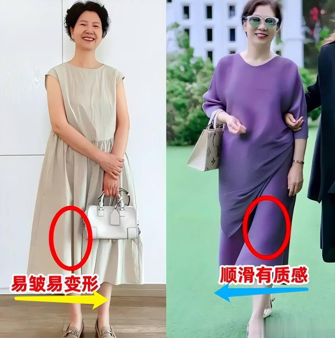 而且垂感好的面料,能很好地修饰身材,显得人更修长,不会软塌塌地贴在身上,避免显胖、显邋遢。千万别选那种软塌塌、没垂感的面料,不仅显廉价,还显老气,大妈味十足。